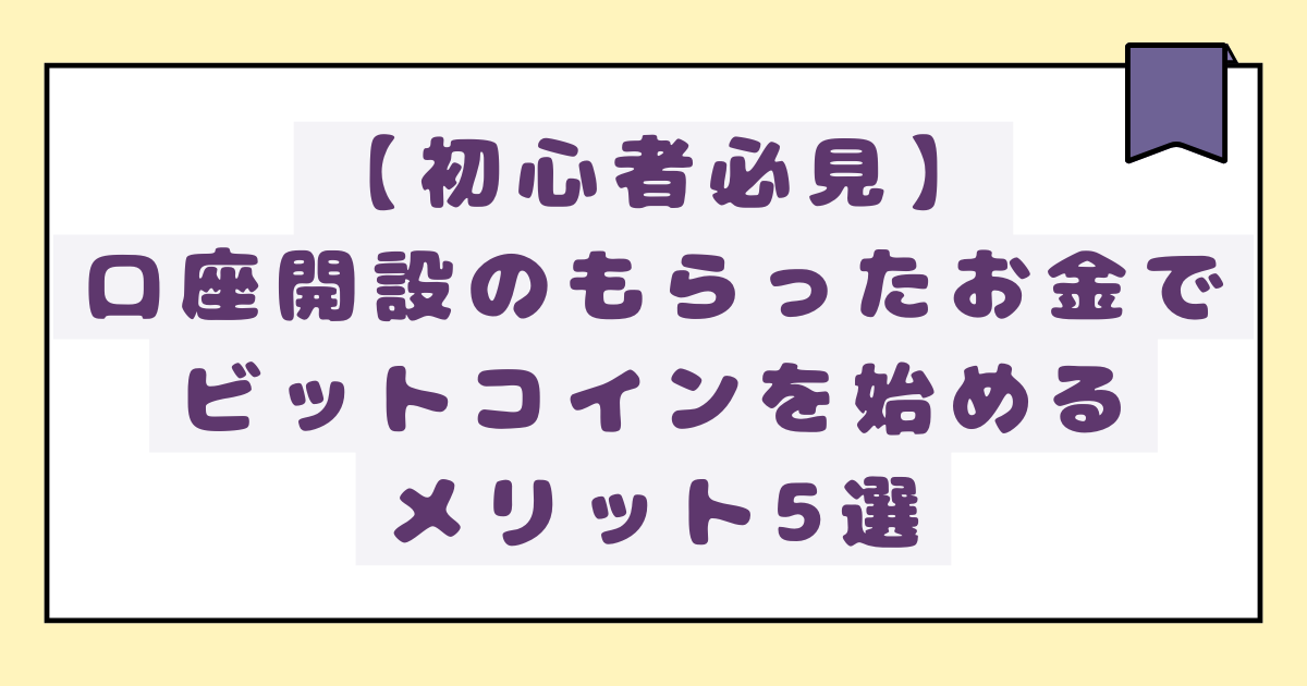 【初心者必見】口座開設のもらったお金でビットコインを始めるメリット5選