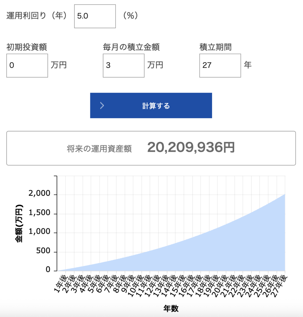 勉強前:毎月2万円の投資 27年後の資産約1300万円だったものが